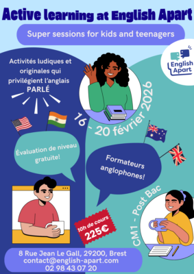 Et n’oubliez pas notre approche pédagogique. Tous nos formateurs anglophones sont spécialisés dans l’enseignement de la langue qui met en valeur la méthodologie « task-based learning », ce qui veut dire que l’expression orale est sollicitée à travers des activités pédagogiques comprenant des tâches spécifiques : pour accomplir la tâche, toute simple ou complexe, il faut s’exprimer clairement pour communiquer une idée en utilisant le vocabulaire et les structures fraichement acquises et…voilà, le cerveau apprend !